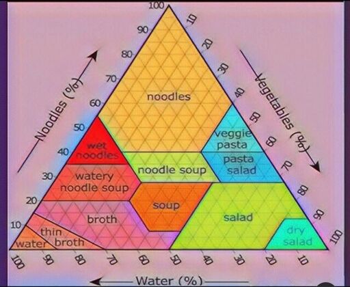 Edit: Oh, you follow the lines, not the triangle boundaryWater = 5% noodles + 5% vegetables + 90% water