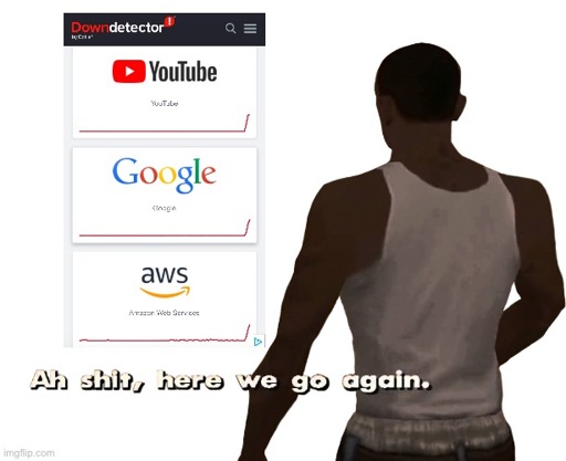 CocaineShrimp@sh.itjust.works to Programmer Humor@lemmy.ml · 2 months agoAnyone else having issues with YouTube right now?lemmy.mlimagemessage-square25linkfedilinkarrow-up1187arrow-down14