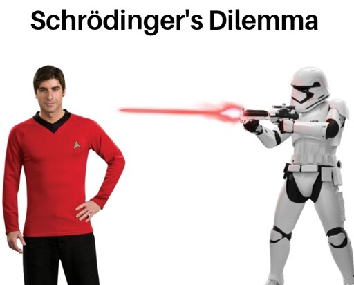 Is the caption ragebait, invoking Cunningham’s law? It’s neither Schrödinger’s nor a dilemma, it’s a reverse irresistible force paradox.