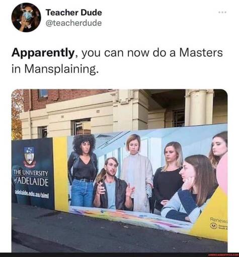 Tbh my only gripe with this post is the assumption that because a man is explaining something to a group of women, it’s automatically mansplaining. Although I guess it’s a joke so whatever.