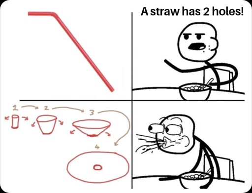 minus-squareValarie@lemmygrad.mllinkfedilinkEnglisharrow-up1·21 days agoIf I’m not mistaken a human has 7 topological holes by default but not 100% sure