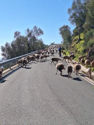 The sheperdess didn’t particularly seem to be leading them. She was sometimes ahead, sometimes in the middle. Once, she got too far ahead and called to them. I got the impression they knew where they were going and she was there to make sure they didn’t lose focus.