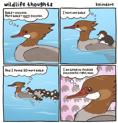 Can’t see any other point they were making then. Unless they are just trying to call hypocrisy towards folks thinking animals having lots of babies is cute while humans doing the same is bad. Because if that is the point that’s missing so much fucken context that if it was a physical object it’d be a fucken mountain range, mostly because most animal babies die pretty fucken often. From experience chicks alone have like a 60 percent mortality rating if humans aren’t directly involved in taking care of them, roosters apparently love to eat chicks.