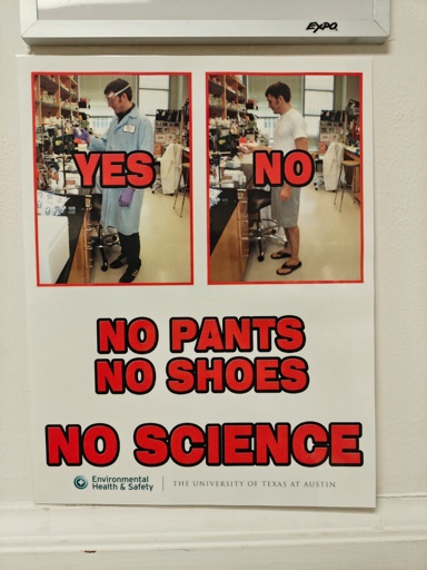 Hmm I was gonna bring my safety glasses to do science, but I don’t have a poster telling me if I should or not.