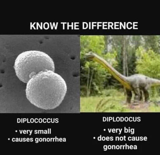 Diplodocuses (diplodocii?) do not cause gonorrhea? How are you so sure? Have you slept with one?