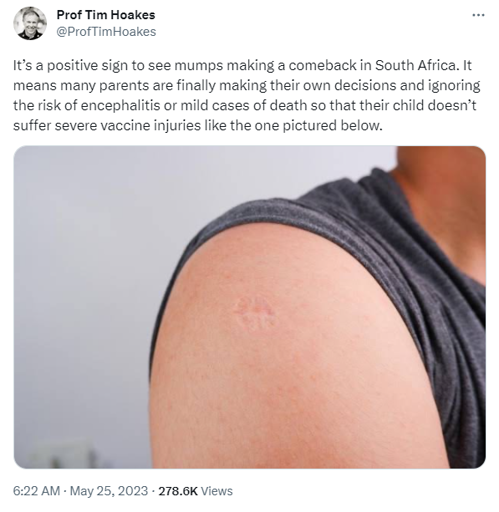 That’s literally just a normal injection mark… meanwhile mumps complications are way worse. Context matters.