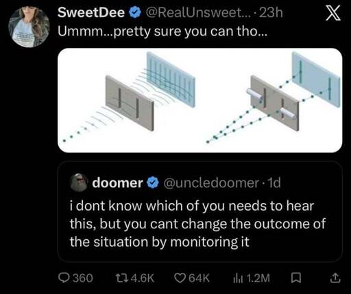 Well but this meme is accurate because it said monitoring the situation. So when you start monitoring which slit the particle goes through, you changed the outcome.