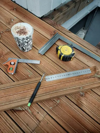 It used to be 30 cm long, but I shortened it and rounded the corners. I had to cut off the first 10 cm rather than the 20–30 cm section, because otherwise I’d lose the markings for the first few millimetres when I grind the corner.