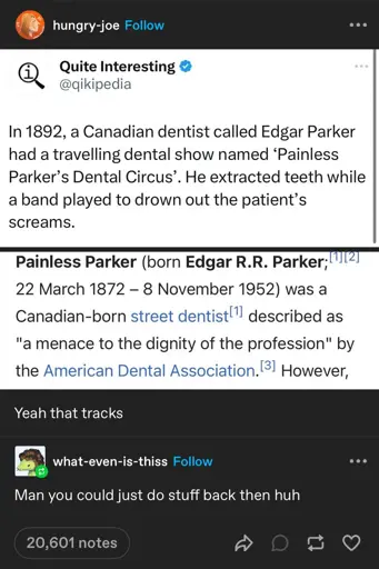 That’s also where the concept of a “barbershop quartet” came from. Dentists would have the aforementioned quartet singing loudly outside of their shop to drown out the screaming of patients inside.