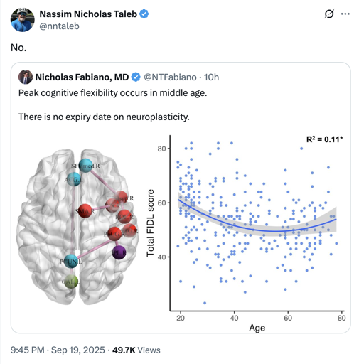 Whether neuroplasticity means you can learn things later or not, the opportunity to learn things later just isn’t there without effort.