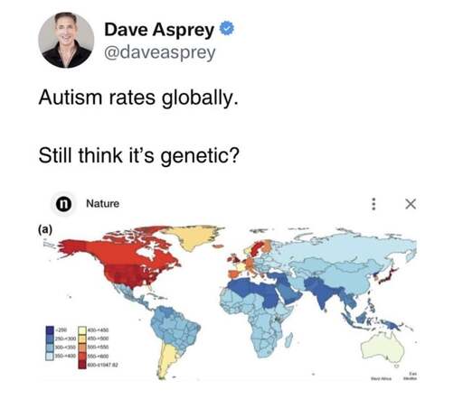 - This, but also isn’t that how genetics works? You’re not going to see a native Chihuahua thriving in the arctic. - (But it’s probably something about what countries actually do testing, etc. ) - countries will higher autism rates have better healthcare… aka higher rates of accurate diagnosis….