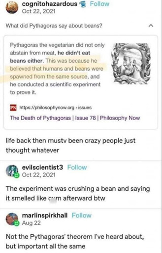 - Pythagoras it’s human being, not human bean!!! Silly goose!