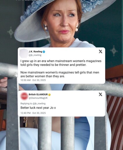 LadyButterfly she/her@piefed.blahaj.zone to LGBTQ+@lemmy.blahaj.zoneEnglish · edit-22 months agoGlamour's response to JK whining about them awarding trans women "women of the year"piefed.cdn.blahaj.zoneimagemessage-square31linkfedilinkarrow-up1335arrow-down15