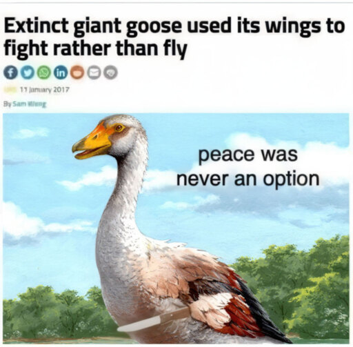 https://www.newscientist.com/article/2117424-extinct-giant-goose-used-its-wings-to-fight-rather-than-fly/