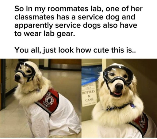 I might be wrong by all points, since I didn’t ever see service dogs in a lab environment, and don’t commonly see them around, but I come from a point of genuine interest.